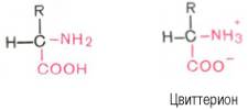 Кислотно-основные свойства. Эти свойства аминокислот определяют многие физико-химические и биологические свойства белков. На этих свойствах основаны, кроме того, почти все методы выделения и идентификации аминокислот. Аминокислоты легко растворимы в воде. Они кристаллизуются из нейтральных водных растворов в форме биполярных (амфотерных) ионов (цвиттерионов), а не в виде недиссоциированных молекул (последнюю структуру приводят для удобства представления, однако все аминокислоты при физиологических значениях рН имеют структуру цвиттериона).