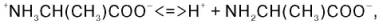 При растворении в воде кристаллическая аминокислота, например аланин, может реагировать или как кислота (донатор протона):