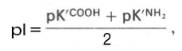 Это означает, что при данном значении рН суммарный (или средний) электрический заряд молекулы аланина равен нулю и она не перемещается в электрическом поле ни к аноду, ни к катоду (изоэлектрическое состояние). Такое значение рН получило название изоэлектрической точки и обозначается pI. Изоэлектрическая точка аминокислот, не содержащих дополнительных NH2- или СООН-групп, представляет собой среднее арифметическое между двумя значениями рК':