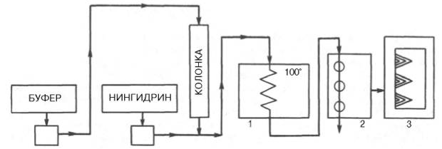 Рис. 1.7. Работа автоматического анализатора аминокислот (принципиальная схема