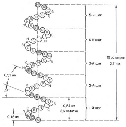 Рис. 1.17. Структура и параметры α-спирали.
