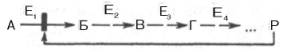 Предположим, что в клетках осуществляется многоступенчатый биосинтетический процесс, каждая стадия которого катализируется собственным ферментом: