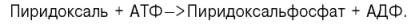Фосфорилирование пиридоксаля и пиридоксамина является ферментативной реакцией, протекающей при участии специфических киназ. Синтез пиридоксальфосфата, например, катализирует пиридоксалькиназа, которая наиболее активна в ткани мозга. Эту реакцию можно представить следующим уравнением: