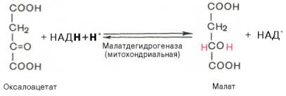Реакция протекает при участии митохондриальной НАД-зависимой малатдегидрогеназы. В митохондриях отношение НАДН/НАД+ относительно велико, в связи с чем внутримитохондриальный оксалоацетат легко восстанавливается в малат, который легко выходит из митохондрии через митохондриальную мембрану. В цитозоле отношение НАДН/НАД+ очень мало, и малат вновь окисляется при участии цитоплазматической НАД-зависимой малатдегидрогеназы: