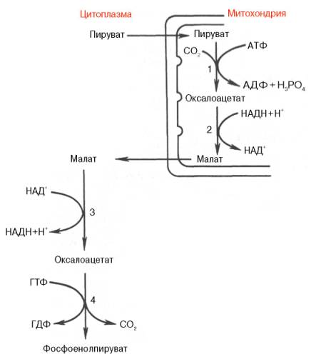 Установлено, что в процессе образования фосфоенолпирувата участвуют ферменты цитозоля и митохондрий.