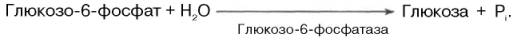 Образование глюкозы из глюкозо-6-фосфата. В последующей обратимой стадии биосинтеза глюкозы фруктозо-6-фосфат превращается в глюкозо-6-фосфат. Последний может дефосфорилироваться (т.е. реакция идет в обход гексокиназной реакции) под влиянием фермента глюкозо-6-фосфатазы: