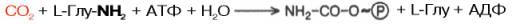 К настоящему времени открыты три разных пути синтеза карбамоил-фосфата de novo, катализируемые тремя разными ферментами. Первую необратимую реакцию катализирует регуляторный фермент – аммиакзави-симая карбамоилфосфатсинтетаза (КФ 6.3.4.16):