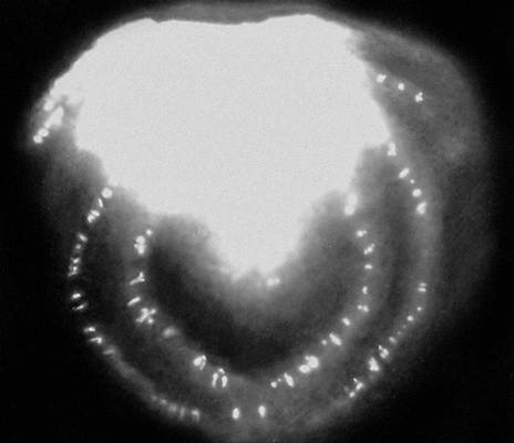 Рис. 2. Распределение радиоизотопа фосфора (32P) на поперечном срезе сахарной свёклы при нанесении изотопа на один из листьев растения.