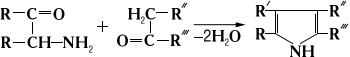 3) Получение пирролов конденсацией a-аминокетонов с кетонами, содержащими активную метиленовую группу: