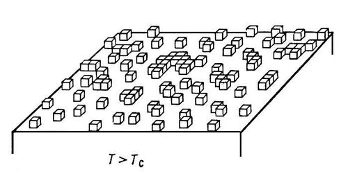 Поверхности кристаллов, растущих послойно, являются атомно гладкими. Это означает, что основная масса возможных атомных положений в слое занята (рис. 5). Поверхности, растущие нормально, в атомном масштабе являются шероховатыми. В них количество вакансии и атомов, адсорбированных на поверхности и занимающих отдельные места, подлежащие заполнению в следующем слое, соизмеримо с полным числом возможных атомных положений (рис. 6). Атомно шероховатые поверхности, а часто и торцы ступеней на атомно гладких поверхностях содержат множество изломов. На изломах атомы могут переходить в кристаллическую фазу поодиночке, не объединяясь в агрегаты и потому не преодолевая связанных с этой коллективностью потенциальных барьеров. Поэтому рост шероховатой поверхности и ступеней обусловлен главным образом присоединением отдельных частиц к изломам. В результате скорости роста шероховатых поверхностей почти одинаковы во всех направлениях и форма растущего кристалла — округлая, а атомно гладкие поверхности растут послойно.