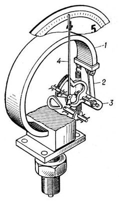 Рис. 5. Трубчатый манометр ММ-40: 1 — трубка; 2 — рычаг передаточного механизма; 3 — передаточный механизм; 4 — стрелка.