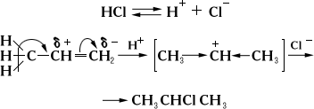 , у которых роль атома водорода играет положительно поляризованная частица X. Всесторонний учёт электронных и пространственных факторов позволяет предсказать ориентацию присоединения практически во всех случаях.