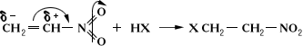 Современная электронная трактовка Марковникова правила позволяет объяснить и ряд случаев присоединения против этого правила. Так, присоединение электрофильных и нуклеофильных агентов к соединениям с сопряжёнными связями, содержащим электроотрицательную группировку у атома углерода двойной связи, происходит против Марковникова правила в соответствии со смещением электронной плотности к наиболее электроотрицательным атомам, например: