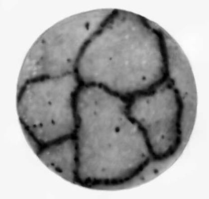 Рис. 1. Микрорадиограмма образца никеля. Исследуется диффузия олова, меченного радиоактивным изотопом 113Sn, в никеле. Распределение радиоактивного олова показывает, что диффузия в основном происходит по границам зёрен никеля.