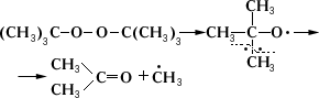 При нагревании или облучении ультрафиолетовым светом органических перекисных соединений происходит разрыв кислород-кислородной связи с образованием свободных радикалов типа RO× или RCO — O×, дальнейшая судьба которых (а следовательно, и общее направление реакции) зависит от характера R. Алкоксильные или ацилоксильные радикалы чаще всего распадаются дальше, давая свободные углеводородные радикалы, например: