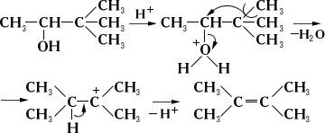Обратная перестройка скелета называется ретропинаколиновой перегруппировкой; механизм ее сходен с механизмом пинаколиновой перегруппировки. Примером может служить образование тетраметилэтилена при дегидратации пинаколинового спирта в присутствии минеральных кислот: