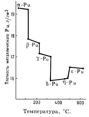 Изменение плотности металлического плутония при нагревании.