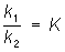 где [С], [D], [А] и [В] — равновесные концентрации реагентов, а К — константа равновесия, зависящая для каждой обратимой реакции от внешних условий. Полученное соотношение есть выражение действующих масс закона; оно характеризует тот предел, до которого может меняться исходный состав системы при самопроизвольном течении реакции в данных условиях, т. е. без затраты работы извне. В условиях равновесия химического концентрации (активности) всех реагентов связаны между собой и нельзя изменить ни одной из них без того, чтобы не изменились все остальные. Приведённое выражение для К справедливо в случае газовых реакций при невысоких давлениях и в разбавленных растворах.