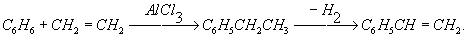 Осн. источником получения ароматических углеводородов служат продукты коксования кам. угля. Из 1 т кам.-уг. смолы можно в среднем выделит: 3,5 кг бензола, 1,5 кг толуола, 2 кг нафталина. Большое значение имеет производство ароматических углеводородов из нефтяных углеводородов жирного ряда (см. Ароматизация нефтепродуктов). Для некоторых ароматических углеводородов имеют практическое значение чисто синтетические методы. Так, из бензола и этилена производят этилбензол, дегидрирование которого приводит к стиролу: