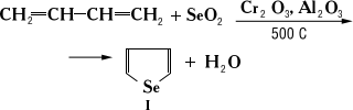 Селенофен (I) получают взаимодействием бутадиена с SeO2 или Se, например: