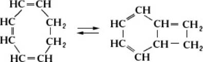 В таутомерных отношениях могут находиться также валентные изомеры, то есть изомеры, превращающиеся друг в друга путём перераспределения валентностей между атомами скелета молекулы, без миграции заместителей, например циклооктатриен существует в равновесии с бициклическим изомером: