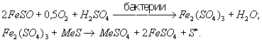Бактериальным выщелачиванием можно пользоваться при всех способах выщелачивания, не связанных с повышенными давлениями и температурой. Наиболее широко для бактериального выщелачивания применяют тионовые бактерии: Thiobacillus ferrooxidans, способные окислять сульфидные минералы и закисное железо до окисного (так называемые железобактерии), и Th. thiooxidans (так называемые серобактерии). Тионовые бактерии являются хемоавтотрофами, т. е. единственный источник энергии для их жизнедеятельности — процессы окисления закисного железа, сульфидов различных металлов и элементарной серы. Эта энергия расходуется на усвоение углекислоты, выделяемой из атмосферы или из руды. Получаемый углерод идёт на построение клеточной ткани бактерий. Th. ferrooxidans окисляют сульфидные минералы до сульфатов прямым и косвенным путём (когда микроорганизмы окисляют сернокислое закисное железо до окисного, являющегося сильным окислителем и растворителем сульфидов):