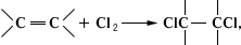 При взаимодействии аммиака с хлором образуется трёххлористый азот (см. Хлориды азота). При хлорировании органических соединений хлор либо замещает водород: R—H + CI2 = RCl + HCI, либо присоединяется по кратным связям:
