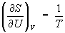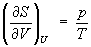 откуда следует, что при выборе в качестве независимых переменных внутренней энергии U и объёма V частные производные энтропии связаны с абсолютной температурой и давлением соотношениями: