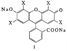 Эозины (от греч. eós — утренняя заря), триарилметановые красители, галогенопроизводные флуоресцеина (I, Х = Н). Наиболее известны собственно эозин (тетрабром флуоресцеин, Х = Вг) и эритрозин (тетраиодфлуоресцеин, Х = I).