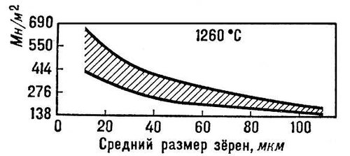 Рис. 2. Зависимость предела прочности бериллида ниобия от среднего размера зёрен.