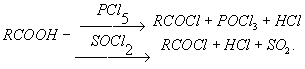 Для этой цели чаще всего используют хлорангидриды органических кислот, получаемые взаимодействием карболовых кислот с хлорангидридами неорганических кислот (РСlз, PCI5, SOCl2):