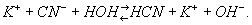 Если гидролизу подвергается соль, образованная слабой кислотой и сильным основанием, например KCN, раствор имеет щелочную реакцию; это объясняется тем, что анион слабой кислоты частично связывает образовавшиеся при диссоциации воды ионы Н+ и в растворе остаётся избыток ионов OH-: