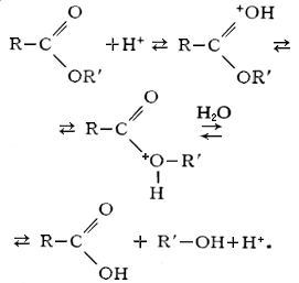 Исключительно важен гидролиз сложных эфиров (реакция, обратная этерификации):