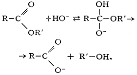 Щелочной гидролиз сложных эфиров необратим, поскольку он приводит к образованию спирта и соли кислоты: