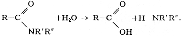 Аналогично сложным эфирам гидролизуются амиды кислот: