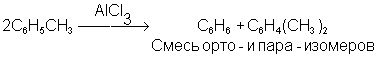 Примером диспропорционирования реакции, сопровождающейся перераспределением алкильных групп, является переход алкилбензолов в смесь бензола и полиалкилбензолов при действии хлористого алюминия: