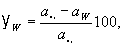 где Уw — усушка в %, апг — размер (объём) образца при пределе гигроскопичности, aw — размер (объём) образца при данной влажности W в диапазоне 0—Wпг. Полная (при удалении всей связанной влаги) усушка в тангенциальном направлении для всех пород 6—10%, в радиальном направлении 3—5%, вдоль волокон 0,1—0,3%; полная объёмная усушка 12—15%.