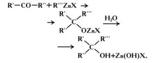 где R', R’’, R’’’ — углеводородные радикалы, X — галоген. Зайцева реакция — частный случай разработанного А. М. Бутлеровым и его учениками общего метода синтеза спиртов из соединений, содержащих карбонильную группу. Впоследствии для синтезов стали применять не цинкорганические, а магнийорганические соединения, которые более удобны в обращении. Реакция открыта А. М. Зайцевым в 1885.