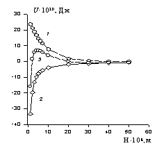 Кривые, лежащие в области отрицательной энергии, соответствуют энергии притяжения, а лежащие в положительной области – отталкивания. Потенциальный барьер, равный примерно 10 kT, свидетельствует об устойчивости данной системы.