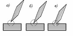Рис. 2.42. Схема возможных контактов между частицами: а- коагуляционный; б- псевдоконденсационный (точечный); в- конденсационно-кристаллизационный контакт срастания (фазовый) |