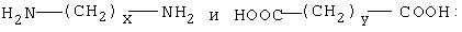 Полиамиды получают поликонденсацией, например, из бифункциональной кислоты и диамина