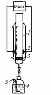 На рис. 2.67 показана схема прибора, действие которого основано на барботировании воздуха через пористый фильтр. На этом рисунке: 1- мерный цилиндр, 2- рубашка термостата, 3 – пористый фильтр, 4 – раствор пенообразователя, 5- трубка для подачи воздуха. С помощью такого прибора можно изучать физико-химические свойства пен в статическом и динамическом режимах при изменении температуры, состава и давления газа, а также диаметра отверстий для барботирования воздуха.