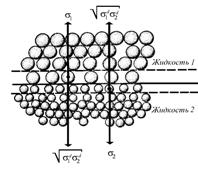На рис. 1.22 показана модель поверхностного слоя между двумя жидкостями, предложенная Гудом и Фоуксом для расчета межфазового натяжения.