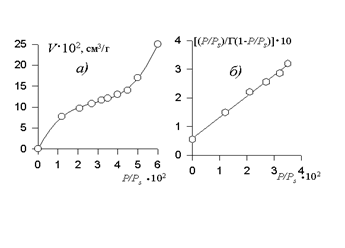Если адсорбент пористый и адсорбция идет в результате заполнения мезопор, то уравнение БЭТ принимает вид