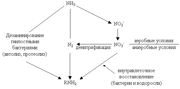 Рис. 8.1. Превращение форм азота в водоеме