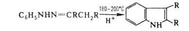 Арилгидразоны в кислых средах претерпевают термич. перегруппировку (р-ция Фишера), приводящую к производным индола:
