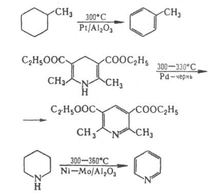 Превращение насыщенных и ненасыщенных циклич. соед. в ароматические наз. дсгидроароматизацией, напр.:
