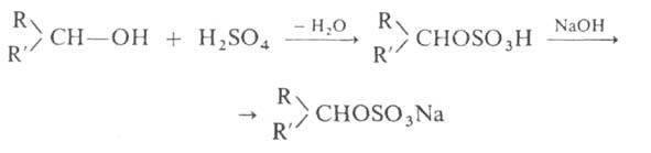Алкилсульфаты, содержащие вторичные алкильные радикалы, синтезируют преим. взаимод. сульфирующих агентов с