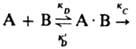 продукты, где кD и к'D - константы скорости образования и распада диффузионной пары соотв., а кС характеризует скорость превращения диффузионной пары в продукты р-ции. Наблюдаемая на опыте константа скорости р-ции кнабл = кCкD(к'D + кС)-1. При выполнении условия к'D >> кС бимолекулярная р-ция протекает в кинетич. режиме и кнабл = кC = KАВ, где КАВ = кD/к'D ; при кC > кD процесс лимитируется диффузией и кнабл = кD . Впервые проблема описания диффузионно-контролируемых реакций была проанализирована М. Смолуховским в применении к коагуляции коллоидов. В квазистационарном режиме скорость встречи частиц А и В: v = 4.10-3pDrNA[A][B] молъ/(л.с), где D -сумма коэф. диффузии частиц А и В (см2/с), r - сумма их радиусов (см), NA - постоянная Авогадро. Частицы при этом рассматриваются как сферы, а жидкость, в к-рой они диффундируют, - как изотропная среда. Квазистационарный режим р-ции устанавливается за время t ~ r2/D (в низковязких жидкостях t ~ 10-8 — 10-10 с). Если между частицами действуют силы притяжения или отталкивания (ионы или молекулы, обладающие дипольным моментом), то вместо R используют т. наз. эффективный радиус встречи (Reff):