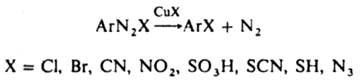 ЗАНДМЕЙЕРА РЕАКЦИЯ, замена диазониевой группы в ароматич. солях диазония на галоген или псевдогалоген в присут. солей Cu(I), напр.: